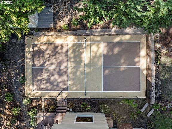 Privately situated on over half an acre of forest, this timeless traditional home offers a refined take on indoor-outdoor living with quiet sophistication. Surrounded by native woods and the seasonal flow of Arnold Creek, the home feels less like a city address and more like a hidden retreat—yet it’s just minutes from downtown Portland, Lake Oswego, and the miles of trails at Tryon Creek State Park. Beyond the front door, refined comfort meets purposeful design in a space that feels both peaceful and private. The formal living room, centered around a wood-burning fireplace, offers a quiet corner to unwind. Anchoring the main living space, the family room’s sleek linear gas fireplace adds a touch of drama, while large windows draw in soft natural light and frame forested views.The kitchen balances purposeful function with natural hues and textures. It’s a space meant not just for cooking, but for gathering. From here, both the family room and dining room open to the expansive deck area, extending the living space into your private forest. Outdoors, the experience continues with layered spaces that evolve with the seasons. The lower patio is built for connection—host friends around the natural gas firepit, grill beneath the open sky, or master the wood-fired pizza oven. Beyond, a professionally installed pickleball court brings play to the landscape. Ambling walking paths trace through the property, inviting slow morning or evening strolls along the creek. This is not just a home—it’s a lifestyle. Of note: central vacuum, Toto toilets with washlets throughout, GE Profile appliances, Hansgrohe fixtures, jacuzzi soaking tub in primary suite, EV charger in garage, storage shed. [Home Energy Score = 5. HES Report at https://rpt.greenbuildingregistry.com/hes/OR10014451]