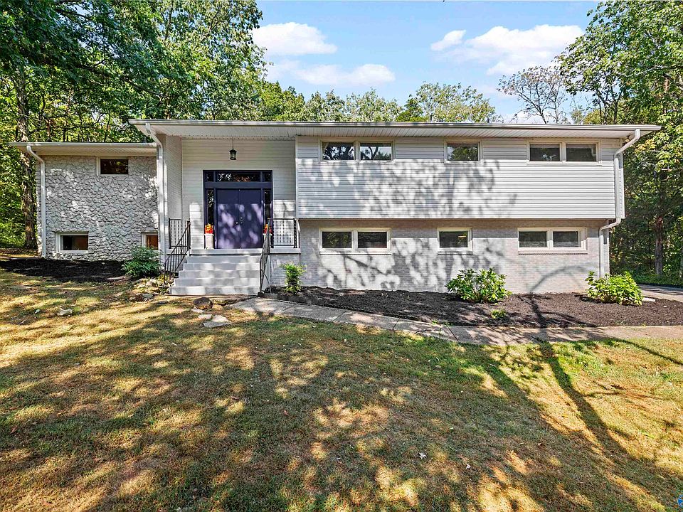 Rare Mtn. Oasis only 20 minutes to Redstone's Gate 9. Such beautiful views you won't want to leave home except to enjoy a serene walk through the friendly neighborhood. Picture window overlooks the woods, or watch deer while relaxing on the upper deck or covered patio. 3 bds, 2 full baths on main level + fully finished walk-out basement with 2 bds, full bath & rec room. Owner's suite has dual vanities, isolated commode & laundry chute. Dining area + eat in kitchen, granite counters & stainless appliances. Huge 2 car garage with space for storage or workbench + access to 5th bd/study/hobby room. Chain link fence for pets w/out disrupting view. 2 peach trees in front. Vintage intercom.
