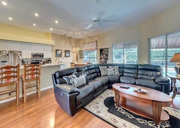 This welcoming 4 Bd/3 Ba home is well appointed with gleaming wood floors and an open floor plan with high ceilings. The kitchen has beautiful granite countertops, stainless steel appliances and large high top bar. Enjoy the screened lanai, splash in the sparkling pool and enjoy your meals in your own private tropical oasis. When it's time to retire, enjoy the spacious master suite with hardwood flooring, sliding glass doors leading to your own private entrance to the lanai. The ensuite is bright and cheery with a large vanity w/dual sinks, garden tub and walk-in shower. The additional bedrooms are spacious, w/tons of closet space and hard wood flooring. Recently completed updates include vertical blinds, new roof, pool cage re-screen, pool resurfaced, new HVAC and exterior painted. Attached photos are from previous sale, updated photos to follow. 3% Buyer's Agent Fee