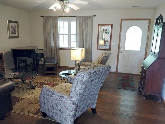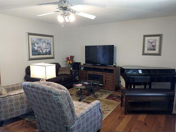 Clean, well maintained home with 40' country porch shaded by mature oak trees. Newer updates/upgrades include HVAC, wood flooring LR, DR, Kit. Tile flooring both bathrooms, and Stainless Steel range, dishwasher and microwave. This one will not disappoint.