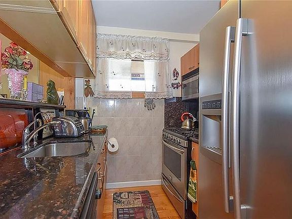 Bright and sunny, fully renovated duplex condo, with 1,572 Sq ft of living space, 2 Bedrooms, 2.5 Baths, separate entrances to each level, parking space, storage shed, and side yard. The main floor is 5 steps above ground, and features Big living room, dinette area, kitchen, master bedroom and 1.5 baths. The subcellar level below has many windows, 9ft ceilings, separate entrance, living room, bedroom with walk-in closet, full bath, and laundry room. Hardwood flors upstairs, tile floors downstairs. Aqualife Water Purification System, 4 Camera Security System, Quiet Air Conditioners (Split Systems). Monthly maintanence is only $150. Taxes are $3,945 per year. Moments To B (Express) And Q Trains, #68 Bus Stop, Beaches, Restaurants And Shopping!