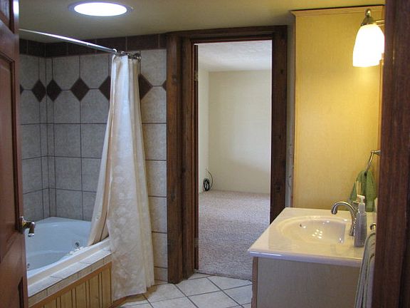 Secluded, private home in town with creek frontage and MOTIVATED SELLER! 4 bedroom/2 bath log home on 1/4 acre lot. Partially covered wrap around deck is great for relaxing and listening to the creek. 2 bedrooms upstairs, full bath with jetted tub, full kitchen, office and living area. Downstairs has separate entrance and could be a mother-in-law apartment which includes kitchen, 2 additional bedrooms, full bath and living area. Beautiful landscaping around house and property adds value and complete underground sprinkler system for easy maintenance. Seller's will look at all offers!