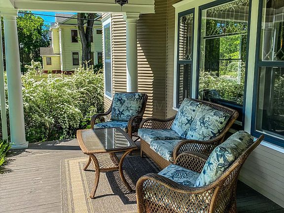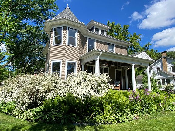 On the national historic registry, this is your opportunity to own a slice of historic Fargo in this updated North Fargo home situated on a large corner lot. The inviting front porch is a welcoming place to great guests, sip coffee or have neighbors over to relax during the summer months. Enter the home thru the original restored front door with original hardware with old world flare. The living room is flooded with natural light, leaded glass windows and a turret style bank of windows with South and East facing windows for even more sunlight. The wood burning fireplace is topped with a large mantle for your decor as well as a wall mount for modern day amenities such as your TV and stereo system, all completed with a cabinet behind to store your components and cords, neatly tucked away and out of sight. The entrance into the living room and dining room have large columns topped with intricate details that keep the house in the era it was built. The kitchen in a true show stopper with custom cabinets, 6 burner capital gas range with built in griddle and custom cutting board complete with pot filling faucet over the stove for added convince. The fridge has and abundance of storage as well as the freezer for all of your entertaining needs. The counter tops are Boos maple butcher block with a cast iron enamel farmhouse since and goose neck faucet with multiple functions and large spray handle. The home comes with a built in pot rack over the kitchen island with blends function and style complete with lights shinning down. Double ovens make cooking fun and easy for daily use and holidays. As a bonus, there is a second dishwasher and second sink in the walk in pantry all with a view overlooking the lush backyard. There is storage where you least expect, neatly tucked under the floor trim below the stove with no attention to detail over looked. Off the kitchen is a large dining room with South facing leaded glass windows and an incredible built in hutch with ample storage, leaded glass and built in lighting. The main floor is topped off with built in speakers in the ceilings, with smart technology to work from your phone. The second floor has 4 large bedroom including the master with a large turret style seating area overlooking historic Broadway with a canopy of trees and lush landscaping. The master has a walk in close with built ins as well as a window as a bonus with room to dress and get ready. The upper level bath is recently update with tile, pedestal sink and deep soaking tub. As a bonus, there is a second floor deck to relax on and that has also been reinforced to add a hot tub if you choose. Moving up! The attic is already wired and is a blank slate with room to finish another bedroom, office space and also has room for another bathroom. The lower Level has a spacious family room, 3/4 update bath and another full kitchen, perfect for movie night with friends, a long term guest or a potential income space to rent out. The yard in private and surrounded with evergreen shrubs, a large patio and wifi controlled sprinkler system to keep you yard looking its best whether you're home or on vacation. The garage has 3 overhead doors with the back of the garage currently used as a large workspace. Call your favorite agent for your private showing of this lovingly restored home.