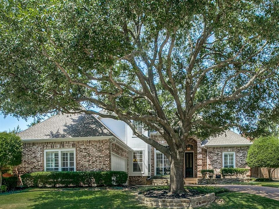 Exceptionally versatile floor plan with owners' suite, 2nd bed and full bath down, both have been updated. 2 beds and large bath up. Enter into dining and living areas with high ceilings, wood burning FP and French doors out to covered patio and very spacious yard. The large kitchen offers granite counter tops and breakfast bar open to the den with a full wall of French doors overlooking the extended patio and backyard. Over sized 2 car garage is conveniently accessed thru laundry room, new garage door (Aug 2020). This home has been lovingly cared for by the same family for almost 30 years. A beautiful testament to the livability of the home and the wonderful Stonebridge community. Welcome home!!
