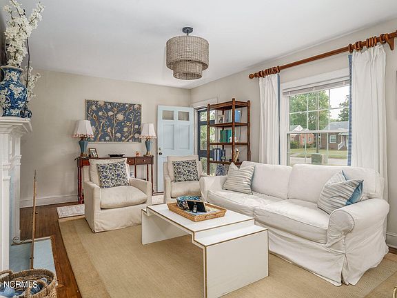 Southern Charmer in Tarboro. 3 Bedroom 1 Full bath home in established neighborhood. Home has great curb appeal featuring a sweet brick walkway and window boxes on the front up to a pretty French storm door on a covered porch. There is also a nice Covered side porch for relaxing outside. Inside find a light and bright home featuring Hardwood floors, a Gas Log fireplace, Kitchen with new tiled backsplash and all the appliances will convey. There are really nice upfitted lighting fixtures throughout that also convey! Fenced yard in back. A Great home that just needs you!