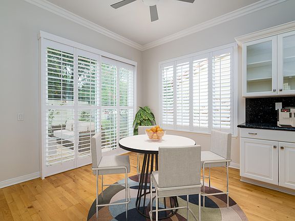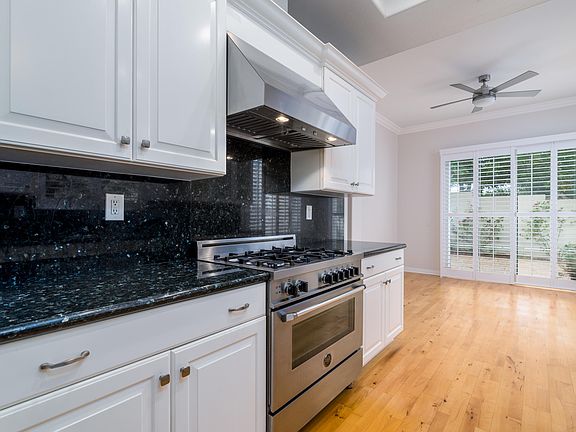 Welcome to Spanish Hills Golf Villas, an exclusive Gated Community located in one of Camarillo's finest areas. This fabulous Home features 3 Bedrooms, 2.5 Bathrooms (including a Powder Room for Guests), stunning hard wood floors, formal Dining area, attached 2-Car Garage, and an indoor Laundry Room. Tastefully updated, the Kitchen offers a beautiful Bertazzoni Gas Range, a convenient Microwave Drawer with a Dishwasher below, granite counters, and a small-door Pantry or Storage Room. Looking out from the Kitchen, you are surrounded by gorgeous greenery - the lush and super private Patio is a great place to be - any time of the day! The Master Bedroom has a sweet little Balcony that overlooks the Pool area, a second ductless A/C unit to keep the room extra cool, and also a cedar-lined Walk-in Closet. The Master Bathroom boasts dual sinks, marble flooring, a large soaking tub, and walk-in shower. A few steps up sits the other two Bedrooms and their Bathroom. One of the rooms was being used as an office, so doesn't currently have doors, or a closet. This terrific community offers the security of a gate, association pool and spa, and a Recreational Room that is available for owners to rent.