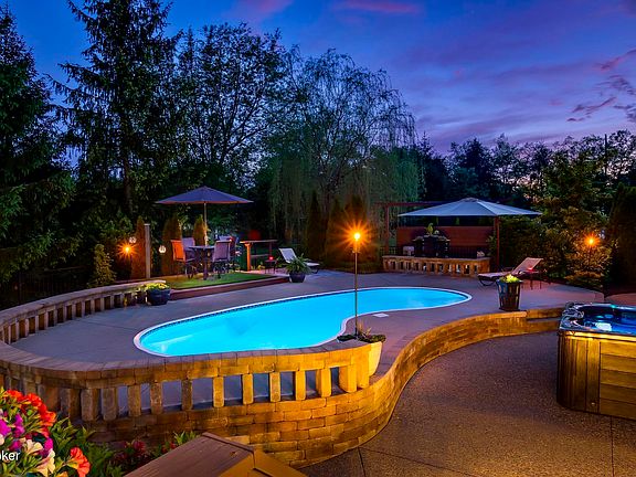 Welcome to this meticulously maintained walk-out ranch in the sought-after Polo Fields community. Situated on a cul-de-sac with .37 acre lot, fenced in back yard with trees providing added privacy for the inground heated saltwater pool and hot tub. The oversized backyard also includes a fire pit, swing set, trampoline, built in rock box and garden that's ready for planting. This home has incredible curb appeal with gorgeous landscaping (both front and backyard) sprinkler system, and two garages having space for four vehicles. The open living concept features a great room with a custom-built stone gas fireplace, dining room, breakfast room and beautiful kitchen. The kitchen has stainless steel appliances, a breakfast bar and granite countertops. The primary suite is privately located on the left side of the 1st floor with separate access to the large deck. The primary suite features a vaulted tray ceiling, a deluxe spa-style bathroom with a jetted tub, tiled walk-in shower, double vanity w/granite counters and a spacious walk-in closet. On the other side of the home, you will find 2 bedrooms with a jack & jill bath with double vanity. This level also offers a half bath and laundry room. The huge rear deck can be accessed from the kitchen or primary suite and has a mounted tv and overlooks the enclosed and oversized backyard, fiberglass heated saltwater pool, and hot tub. The walk-out lower level has a massive multipurpose room (that could be used as a guest room) with a full bath and a door that is wide enough to accommodate a wheelchair. The lower level also has an exercise room and large storage room with wooden shelves. This is a must-see move in ready ranch home that has style, class and is great for entertaining. It won't last long!