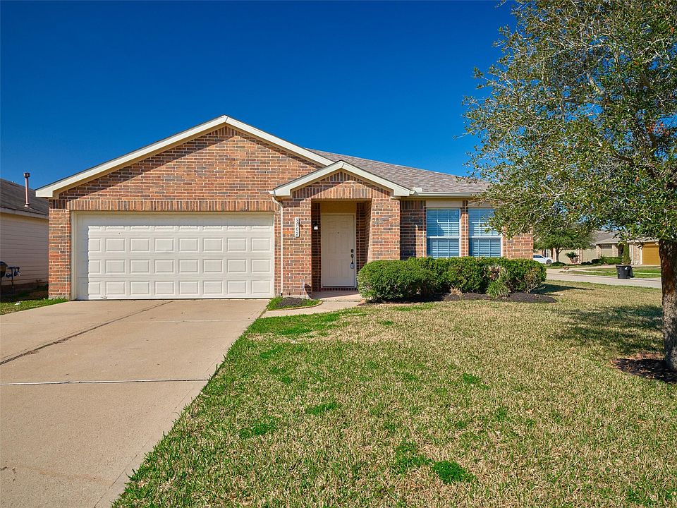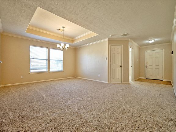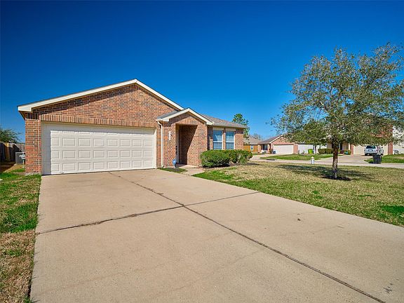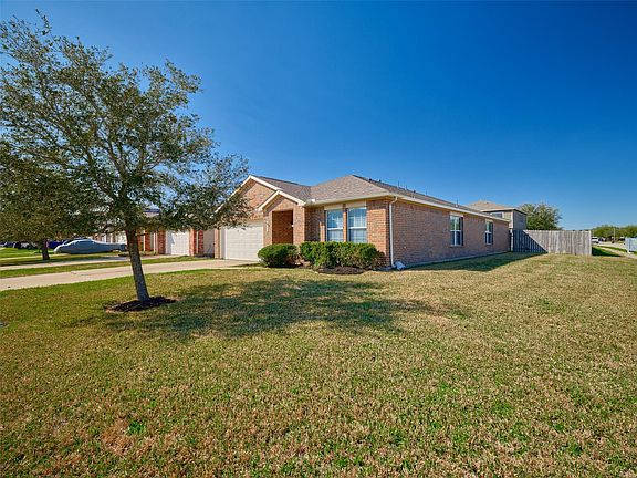 Spacious and well used floor plan with +/- 2090 Sqft, offering 4 bedrooms or three and a study. This wonderful one story home sits nicely on a big corner lot, in a great little community, with very easy Hwy access to 59 and Hwy 36. This well cared for home offers a split floor plan with the 4th bedroom or study right at the entrance, the primary bedroom is in the back of the home, and two other secondary bedrooms and main bath on the left front side of the home. The home is light bright and neutral with recent carpet replaced 2023 and ceramic tile in the family, breakfast, kitchen and baths. The family room is spacious with gas log corner fireplace, tray ceiling and access to covered back patio. The kitchen is nice with solid surface countertops, black appliances, working island and lots of cabinets. The primary bedroom is big, with nice walk in closet and the en-suite bath featuring separate shower, soaking tub, double sinks and separate water closet. Formal dining and breakfast also.