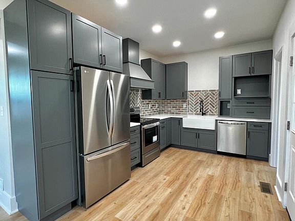 Completely renovated home ready for move in! Main level features an open floor plan, with all new kitchen cabinets, countertops, backsplash, recessed lighting, half bath, dining and living areas, and vinyl flooring throughout. The second floor boasts a beautiful bathroom, with a walk-in curbless shower, tile flooring, double vanity and a large soaking tub as well as 2 carpeted bedrooms with walk-in closets. Outside you’ll find a front and rear porch, a detached garage, a large yard, and added off street parking in the rear of the house. This house has all new: plumbing, electric service, HVAC (ducts, furnace, AC unit), wiring, roof, windows, and insulation to ensure your comfort and convenience. Jump on this opportunity to own a completely refinished home!