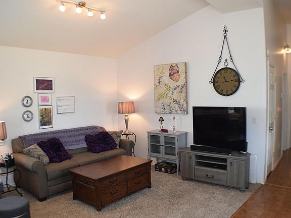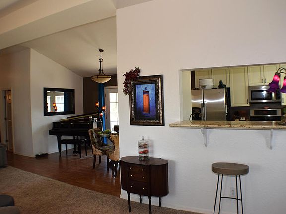Welcome Home to an adorable country living white picket fence move in ready family home. All upgrades including granite counter tops, custom stained cabinets, wood purdue floors, pantry slide out drawers, stainless steel appliances(frig negotiable).Fresh new carpet, new paint inside & out, new window treatments & new roof. The French doors open to the back patio to 1 acre lot that has plenty of room for RV parking, toys & visiting guests. The 2 car garage has storage, shelving, ceiling fans & an epoxy concrete floor. This property is completely fenced with an additional storage shed, garden area, chicken coop and dog run. The plentiful fruit trees in the front yard of apple, peach, apricot and plum make for great baking and canning. These country views make it complete as Home Sweet Home