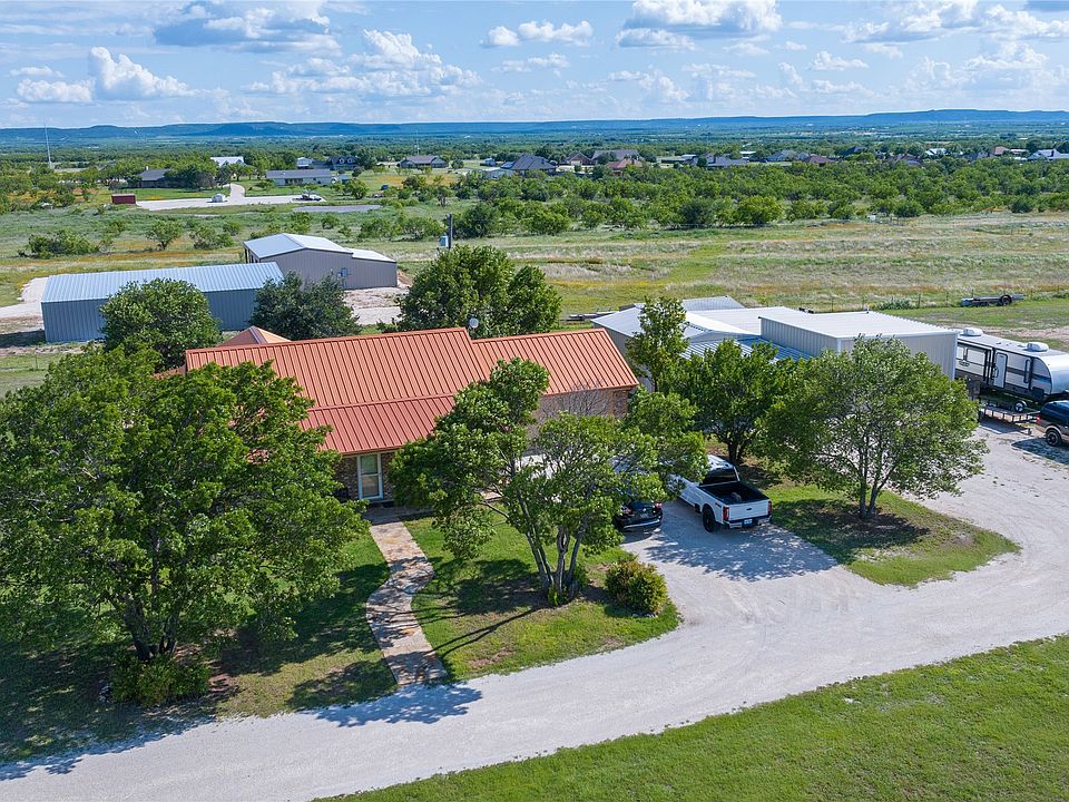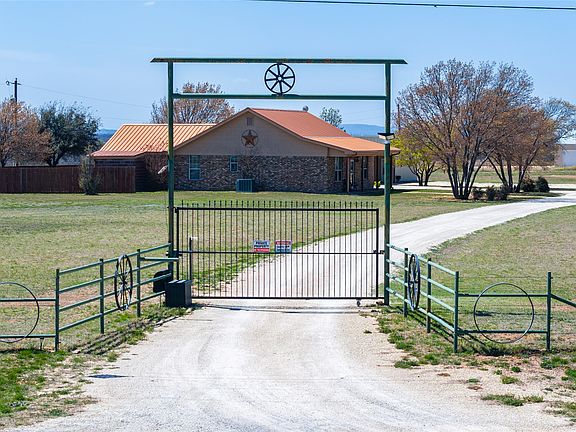 This versatile 5 acre property near Abilene Regional Airport and the Expo Center is a great opportunity for short term rental or Airbnb income or someone just needing separate residences on the same property. The main home offers 2 bedrooms, 1.5 baths, a durable metal roof, vaulted ceilings in the living room, solid surface countertops, and a cozy sunroom with a pellet stove. There's also a secure cinder block safe room, a 2 car garage, and a covered back porch inside a wood privacy fenced yard. The home is generator ready with a dedicated plug installed. Bonus structures: a detached 20x24 guest house with a full kitchen, bathroom, and washer dryer hookups, connected to a 20x30 workshop and 20x20 carport, plus a 750 sq ft game room that includes shuffleboard table, pool table, bar and existing furnishings!! With flexible living spaces, privacy for multiple groups, and plenty of covered parking, this setup is ideal for hosting family & friends, short term stays, events, or traveling professionals. The fully fenced property includes an electric entry gate for security and easy access. Properties like this, with multi-unit potential and prime location, are rare don’t miss this gem!