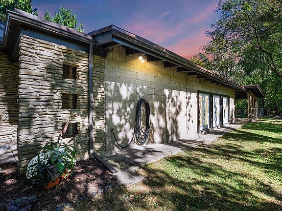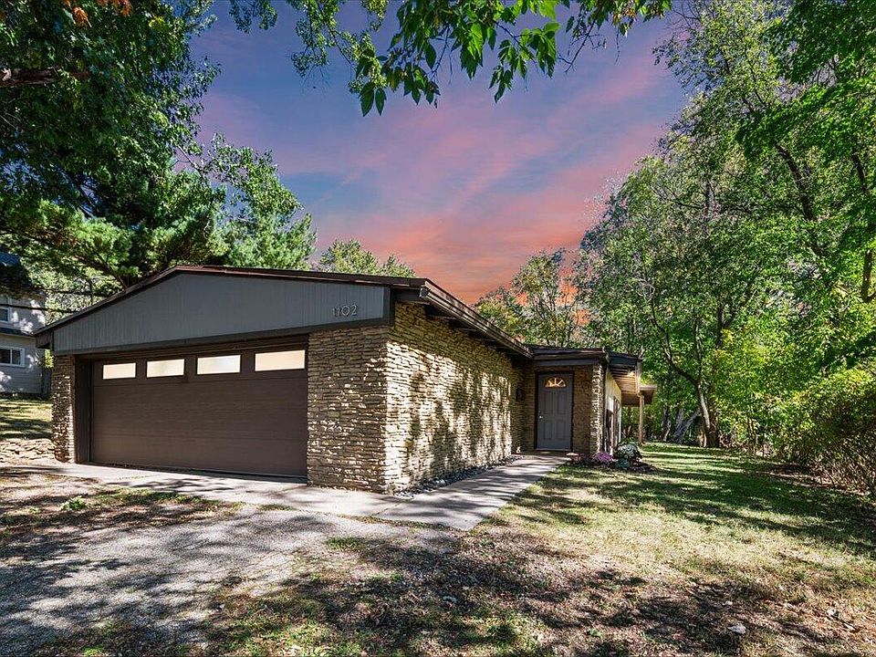 Highland Park | Intriguing Mid-century Modern ranch nestled in a private setting, on a large double lot with adjacent wildlife area, above Carrier Creek Trail. This sprawling home was built with luxury & entertaining in mind. The sunken living room features a stone fireplace wall that matches exterior stone. Vaulted beamed ceilings reflect natural light from a room lined with glass sliders out to wooded view. The elevated landing with metal guardrails could host your dining room table or your turntables. Large kitchen with built-ins and adjacent laundry, the primary bathroom has a sunken Roman bath lined in vintage tile. Primary bedroom offers sliders to a covered patio and fenced yard, only a small portion of the full huge lot. This is too interesting to pass up.