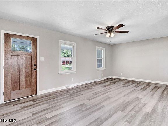 GREAT LOCATION! Inviting front porch leads into UPDATED, open concept, three bedroom, two bathroom home. New LVP flooring flows seamlessly throughout living and dining rooms, eat-in Kitchen, kitchen and laundry room! Kitchen boasts of brand new cabinets, quartz counters, stainless appliances and fixtures! Additional updates include fresh paint and new lighting throughout the home. Beautiful refinished wood floors accentuate the hallway and bedrooms. Master suite features full bathroom with new quartz counter top, fixtures and reglazed shower. Eat-in kitchen leads outside to a spacious backyard,with patio, perfect for morning coffee or grilling out! Conveniently located! Minutes from shopping and restaurants, 1.1 miles from Wayne Country Day School, .03 miles from Wayne Christian School and only 11 miles from Seymour Johnson AFB!