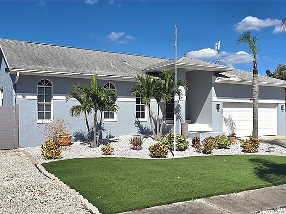Tropical Oasis Just Minutes from the Gulf! Freshly painted exterior! Discover your own slice of paradise in this beautifully maintained 3-bedroom, 2-bath home with a 2-car garage, tucked away in a peaceful, highly sought-after neighborhood just minutes from the stunning Gulf Coast. From the moment you arrive, you’ll be welcomed by an etched glass front door, soaring vaulted ceilings, and arched windows that fill the home with natural light and warmth. Enjoy the ease of no carpet throughout, and embrace the Florida lifestyle with your screen-enclosed pool and spa, ideal for relaxing or entertaining. The screened-in back porch opens to a fenced tropical backyard oasis featuring lush, maintenance-free landscaping—your private retreat all year round. Need extra space? This property offers ample parking with room for an RV, boat, or trailer—a rare find in such a prime location. Perfectly situated just under 2 miles to Fred Howard Park, with its beach, causeway, and trails, and only 1 mile to Sunset Beach, where you can enjoy monthly concerts and unforgettable sunsets. You’ll also be close to the famous Sponge Docks, golf courses, the Pinellas Trail, and a variety of local festivals, art shows, shopping, and top-rated dining. All furniture can be included, making this an exceptional turnkey opportunity—whether you're relocating, investing, or looking for your forever home. Start living the dream—schedule your private tour today! You won’t want to miss this one. This property has never experienced any flooding including with Helene.