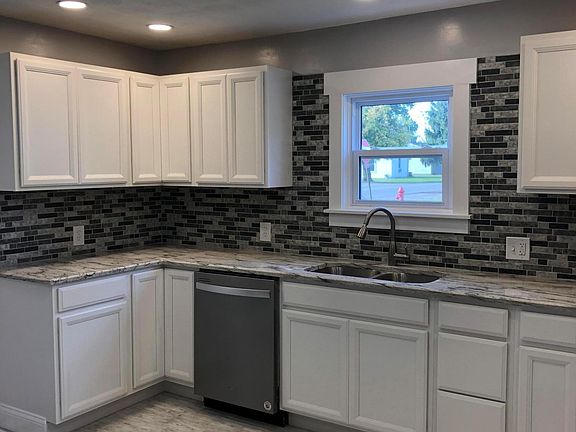 You will fall in love with this spacious two story home that has been completely renovated. There isn't a room that hasn't been made over!! Gorgeous remodeled kitchen equipped with dishwasher, microwave, granite countertops and soft close cabinets, large living room open to the kitchen, 4 bedrooms with 3 on second floor and master suite on the main floor with custom sliding barn door, 2 baths with beautiful tile surround in the shower, new concrete patios and sidewalk, new heating and cooling and duct work, new windows, all new flooring, and oversized attached 2 car garage all situated on a spacious corner lot!
