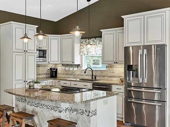 - RoomKitchenFeatures: Granite Counters, Kitchen Island, Pantry, Breakfast Bar, Eat-in Kitchen, Custom Cabinetry, Breakfast Room, SolidSurfaceCounter