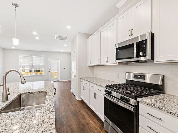 Stunning 2024 built, 3 bedroom townhome! Open floor plan with gourmet eat in kitchen, gas range, island, all opening to dining area and huge family room. Deck and patio for entertaining and to enjoy the outdoors. LVP flooring and carpet, Each bedroom has adjacent full bath, Primary suite with walk in closet dual sinks. Huge bonus room for play space of Den/Office. Easy access to Durham Freeway 885 or Highway 98. Quick commute to Duke University, RTP, RDU Airport, Downtown Durham, Brier Creek or Southpoint Shopping Areas, Falls Lake State Park and much more! Large dog park, recreation field and EV charging stations. GE washer, dryer and refrigerator, 2'' faux-wood blinds for all windows, 9-foot ceilings on all levels, oversized 2-Car tandem parking garage with tons of storage or perfect your future home gym. Application fee only due if applicant ends up leasing the property.