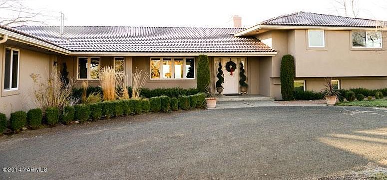 Mediterranean style home on 14 ac's in WV on the shoulder of Cowiche Mountain. Private setting at the end of a county road w/amazing views backed up against BLM Land. Park-like setting designed to enjoy outdoor living including a 2200 SF paver patio for panoramic view of the valley below. From the inside, enjoy sunlight through the floor to ceiling windows & French doors. Open kitchen concept w/ vaulted connected DR & FR.