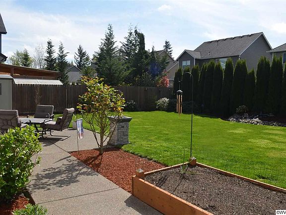 This is a must see. Pride of ownership shows w/every step. Custom built home. Features include 2 hot wtr heaters, HVAC - booster fan for climate control, upgraded air filters, energy panels in attic w/booster fan. Electric bill cut in 1/2. In ground sprinklers front & back, RV pad, cable in every room, pond w/waterfall, perfectly landscaped on a desirable Keizer cul-de-sac. Kitchen boasts island w/pull outs, gas cook top & good sized pantry. 9' ceilings through out. Tile entry. Extra large slider to custom built patio with pergola. New 7 ‘ fence, carpet and paint done in 2021.