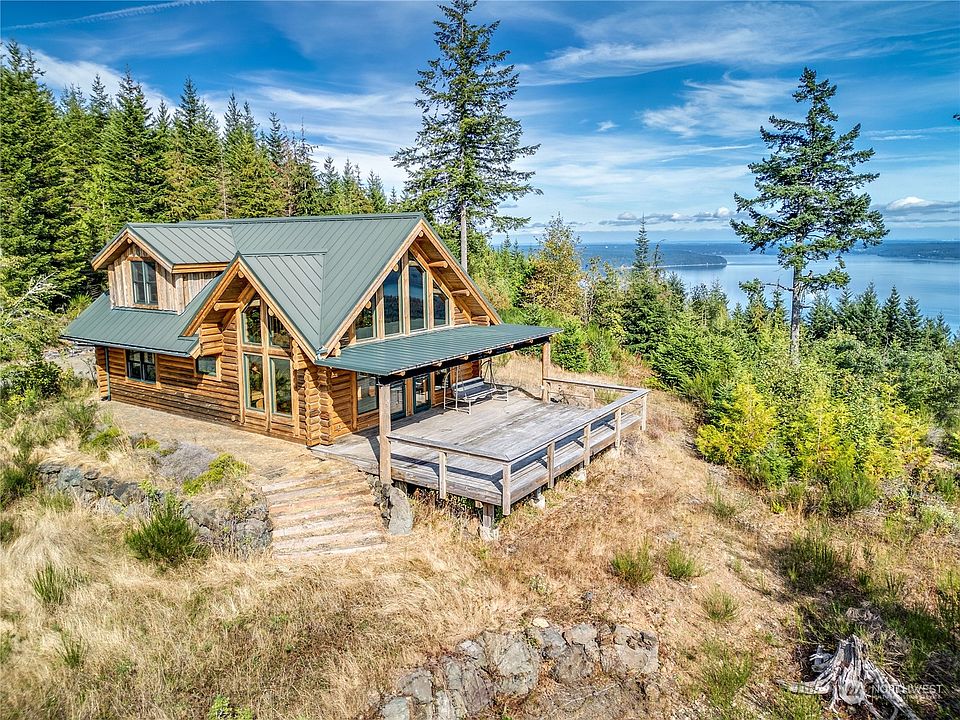Top of the world views come w/ this well-crafted log home on 20+ acres. Set near the top of Mount Jupiter, the 360-degree views stretch from the skyline of Seattle to end of the Hood Canal, the Duckabush River valley to the foothills of the Olympic Mountains. Classic, well-built log home constructed by Rocky Mountain Log Homes. End of the road serenity, property has forest land on two sides. Expansive 1200 square foot metal building w/ concrete floors, ideal for recreation vehicles so you can take advantage of the many miles of trails in the surrounding forest. Located just a few miles from state boat launch, many hiking trails & all the outdoor activities along the Hood Canal. If you're looking for peace and tranquility you have found it.