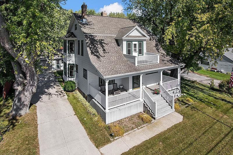 BEAUTIFUL CHARM & ORIGINAL, WELL MAINTAINED character throughout that you will fall in love with immediately. Great curb appeal w/large front porch to sit & relax on or decorate for the seasons! Spacious LR w/brick gas fireplace & large mantle ideal for decorating for the holidays. French doors lead to the formal DR w/bump out window. KT has good counter space & appliances included + access to back entrance porch area. Convenient half bath off the KT & an extra area off of LR ideal for reading nook or office. 2 stairs to upstairs, partially open staircase is gorgeous...EVERYWHERE you turn is beautiful original woodwork. Hdwd floors under carpet per seller. Full bath & 3 BRs up. Main BR has 4+ closet areas. 48 binding acceptance. Full basement. In Kellnersville & quick access to I-43