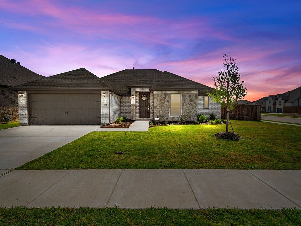 This beautiful home sits on an oversized quarter acre lot in the desirable Timberbrook neighborhood in Justin. Inside, you'll find stunning wood-like tile floors throughout the main living areas and an abundance of natural light, creating a warm and inviting atmosphere. The kitchen is a chef's dream featuring a huge pantry, farm sink, granite countertops, and stainless steel appliances, perfect for making delicious meals and entertaining guests. The split four bedroom floorplan includes a big and bright primary suite with a bonus flex space, an en-suite with dual sinks, soaking tub, separate shower, and a large walk-in closet. The other side of the home has two more bedrooms and a full bathroom. The front bedroom could also be a perfect office or playroom. Located in sought-after Northwest ISD, this home is walking distance to the stunning pool and park. Plus, with one of the biggest backyards in the neighborhood, including an extended patio, you have plenty of space for outdoor fun!