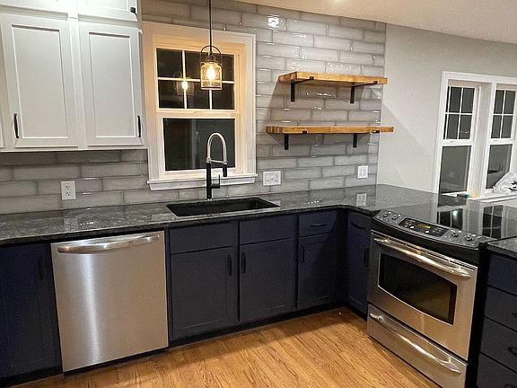 Newly renovated home with new roof, siding, windows, furnace, wiring and plumbing. Hardwood floors have been refinished throughout living space and bedrooms. New kitchen with granite counters and stainless appliances. New bathrooms with tiled shower walls and floors. Main floor laundry/mudroom. New attached 26 x 26 garage with 10.5 ceiling with loft space. Large .87 acre lot. For sale by owner