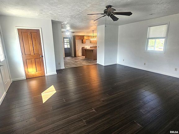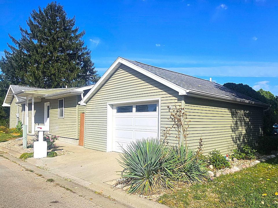 You'll love the bright cheery atmosphere of this 2 bedroom home with a great open floor plan. Huge living, dining, and kitchen area with all new easy care flooring. You'll find the spacious bedrooms have brand new carpet. The interior has bright fresh paint and there are ceiling fans in each room. There are new hard wired carbon monoxide & smoke detectors. Outdoor access to small cellar/basement that holds the furnace, water heater, etc. You'll enjoy the great covered patio with a small privacy fence (patio has a ceiling fan!!) and the 20x20 garage has a bath with shower and you'll also find lots of shelving for storage. Don't miss this one! It's ready & waiting for you!