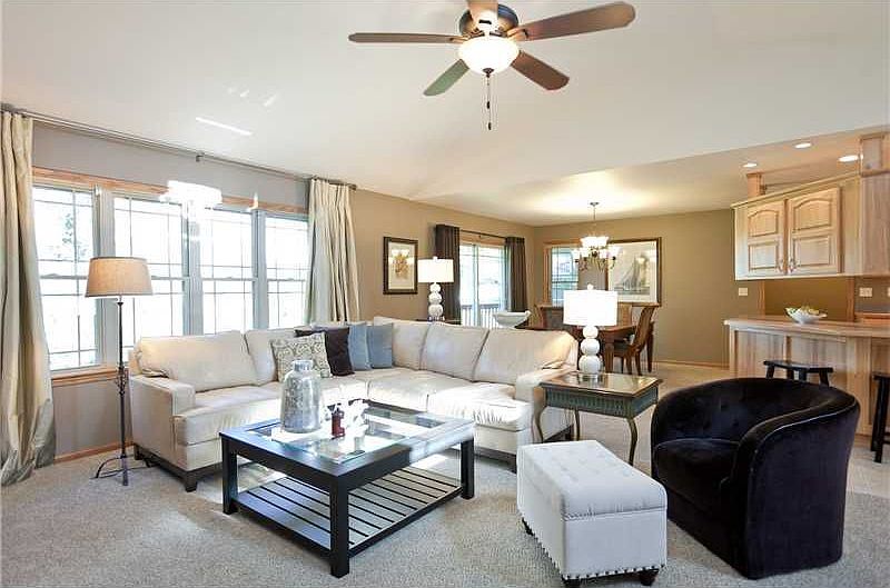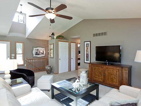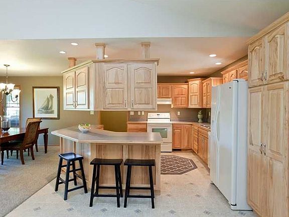 This lovely home is situated on a wooded, double lot with backyard privacy. Backyard is fully fenced, has apatio with space for table, grill, etc. Bright, open great room with beautiful dining area and a slider to upper level deck. Kitchen has generous hickory cabinet and countertop space, an island and breadfast bar. Allkithcen appliances plus washer & dryer included.Master bedroom suit has a full master bath and nearby main floor laundry. Enjoy 9ft. ceilings in the lower level, a pool table area (pool table stays), TV?entertainmentarea, wet bar with refrigerator, and adjacent dining area.