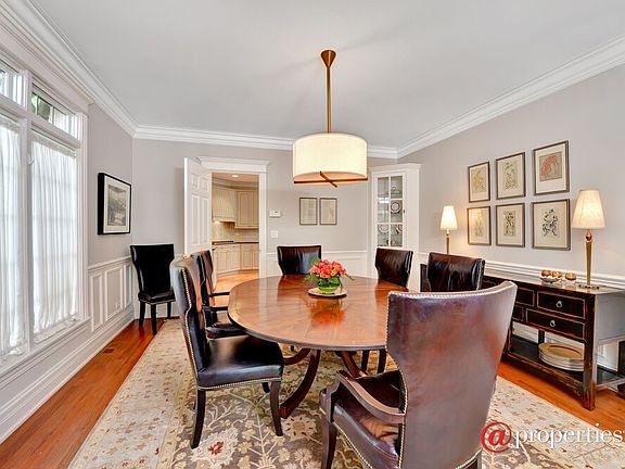 Move right into this beautiful like new home!. Exquisite mill work, arched doorways, sky lite 2 sty entry, high ceilings even in ll. Expansive light gray kitchen has over sized island w/2nd prep sink, refrig drawers & skylight breakfast area, all open to sun filled family rm w/built in cabinetry, fpl & french doors to raised deck & brick patio. 1st flr office w/built in bookcases. Serene master ste features tray ceiling & fireplace. 2nd flr laundry rm. Lower level w/11 ft ceilings, rec room, wet bar w/custom built ins, 5th br, 4th full bath., hobby/craft area, exercise room. 2/3 blks to k-8th schools & 4 blks to town & train. * not in the flood plain*