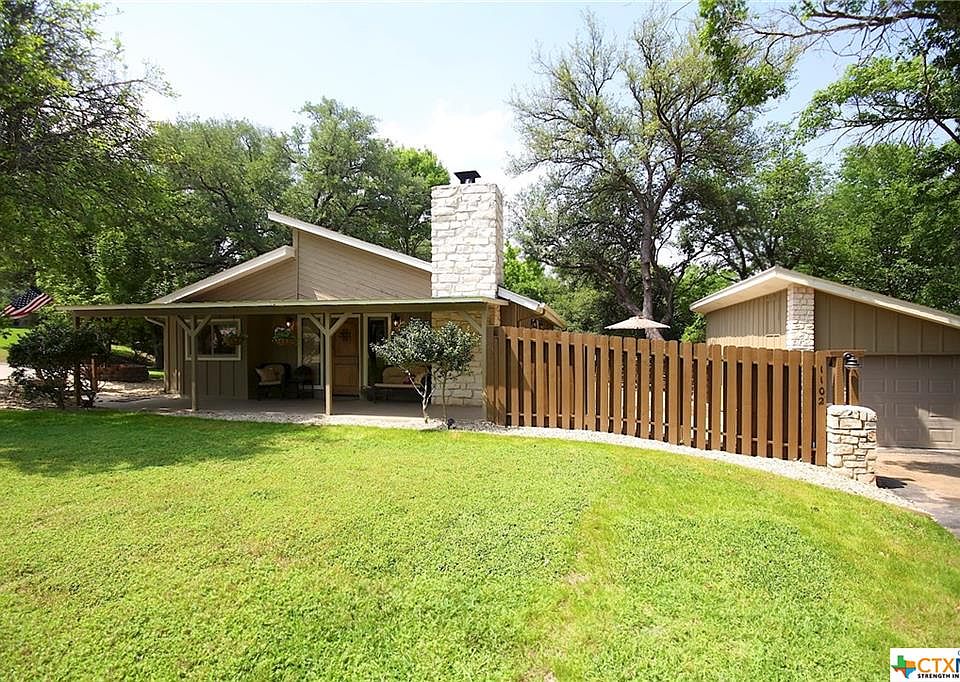 Spectacular, newly remodeled home with 3 bedrooms 2 full bathrooms. Spacious .33 acre lot with large circle driveway. Gorgeous Knotty Alder front door, along with Knotty Alder French doors leading to beautiful patio and deck for lounging under mature oak trees. Barnwood style porcelain tile floors throughout. 16 foot vaulted cedar beam ceilings. Chef's kitchen with new GE Slate appliances, including side by side refrigerator with ice and water in the door, granite countertops and upgraded cabinetry with large built-in pantry. Upgraded energy efficient windows throughout home. Austin stone wood burning fireplace and custom mantle. Stunning en-suite master bedroom with double sinks, granite granitetops, large stone and tiled shower with stylish sliding barn door. Laundry room with storage and Whirlpool washer and dryer included. Single car garage with workshop and storage, with room to expand.