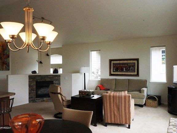 Great open floor plan! Reverse 2 story condo w/vaulted LR/DR/Kit. Kitchen w/42" cabs, SS appliance & breakfast bar. MBR w/nice WIC, MBA w/dbl vanity, tub & sep shower. 1/2 bath & laundry located upstairs. Downstairs boasts 2 bedrooms each featuring his/hers closets. Conveniently located in nice South Anchorage location close to shopping & restaurants!