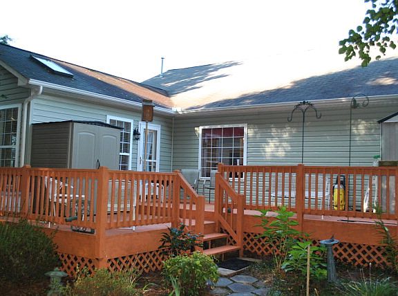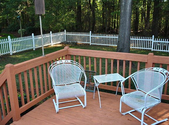 Large living room with gas log fireplace, formal dining room, beautiful expanded sunroom with built in ironing board, kitchen with range, refrigerator, microwave and dishwasher. Bedrooms carpeted, remain floors are hardwood, spacious master with garden tub & separate shower. 3rd bedroom is used as an office but has walk-in closet right outside the door. In-ground watering system, sealed crawl space with dehumidifier, large back deck and fenced back yard.