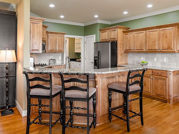 Curb appeal galore and move-in ready! This fabulous home located in the North Oldham School District offers an open floor plan, hardwood floors, gorgeous kitchen, and a wonderful outdoor living space. The kitchen is a chef's dream with top of the line appliances, gas cooktop, granite countertops and custom cabinets. A covered outdoor living space is located just off of the kitchen allowing a wonderful area to entertain or enjoy your private backyard. The great room has a stone fireplace with a mantel and is flanked with custom bookcases. The first floor office offers a private space with French doors for working or studying. The dining room has a butlers pantry, wainscoting and is large enough to accommodate a banquet size table. The first floor primary suite has a large walk-in closet and the bath features a double vanity, spa tub and large shower. A decorative powder bath and laundry room complete the first floor. Upstairs you will find 3 bedrooms and a bonus room. One bedroom has an en-suite bath and the others are adjoined by a jack n jill bath. The bonus room can be used for a play area or family room. The finished basement has a family room and media area, custom bar and plenty of space to entertain. There is a bedroom and full bath, making this a wonderful area for guests or family. Ridgeview Place subdivision is located close to many amenities including golf courses, boating and the North Oldham school campus. Make this house your home!