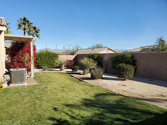 Perfect get away or family home in a wonderful gated community with a great inside location in the complex. Newly upgraded with modern gray wood look tile flooring throughout. Freshly painted in white. Cozy fireplace in great room has new tile. Kitchen has large island and walk in pantry. Separate inside laundry room and 2 car garage! Backyard has grassy area for kids and dogs! Very low HOA dues at 120/mo. with amenities that include 3 pools, spas, tennis courts, basketball court, walking trails, playground, greenbelts, and roving patrol. Mountain gate is located just off Palm Canyon close to the Palm Springs Tram, dining, shopping, and entertainment.