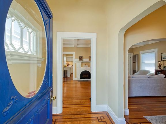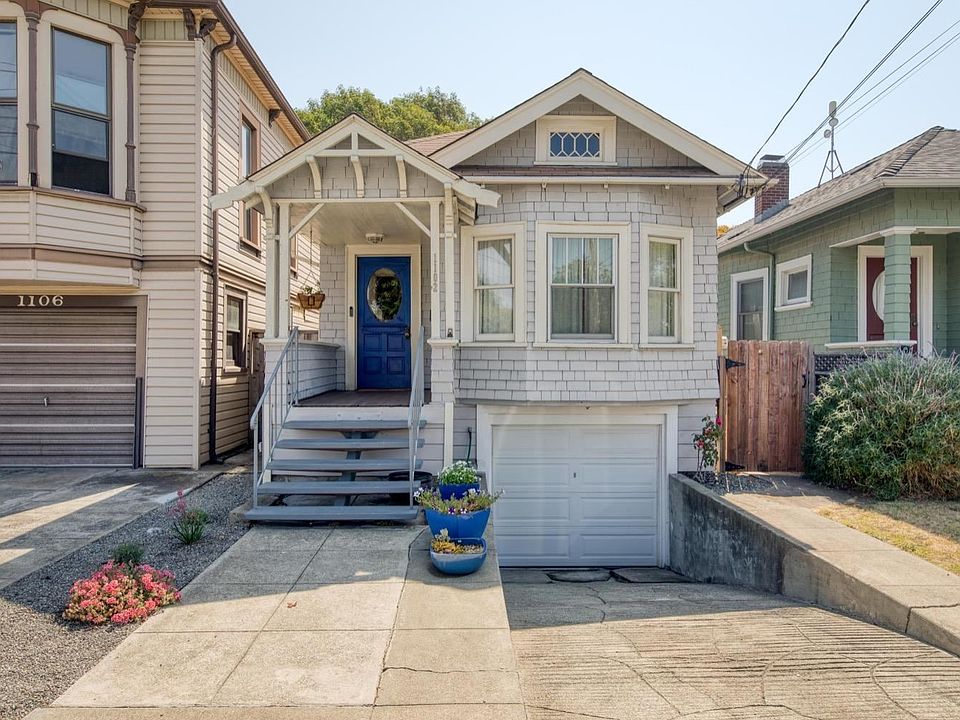 Built in 1907, this lovingly cared for California Craftsman is a graceful home. Box beam ceilings, hardwood floor inlay and original built-ins give this property style and sophistication. Newly renovated bathroom and kitchen, as well as new primary bedroom addition, with walk-in closet and walk in shower, add space and modern comfort. This home features a new mini-split (air and heat), washer and dryer and Toto bidet toilet. New sliding screen door leads to large peaceful backyard garden with mature landscaping; a great place to repose and reset. Garage can be used for parking or storage. Located within walking distance to restaurants, shopping, groceries, movie theatre and an express bus line to SF. One block from Chochenyo Park and driving distance to ferries. Own your own slice of the beloved island of Alameda.