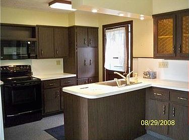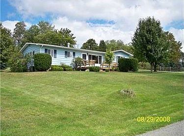 3 bedroom ranch with a great view. Newly remodeled bathroom with cherry cabinets, solid surface tub surround and ceramic tile floor . Fireplace in family room and woodburner in the downstairs family room . Hardwood floors under some of the carpet. Large deck in front to enjoy the view.