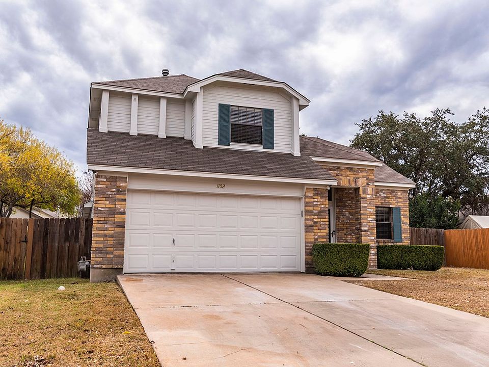 Imagine making Saturday morning breakfast in the open kitchen, where you can see your family playing in the living room nearby. You may spend your evenings cozied up near a fire pit in the big backyard, with covered patio and old trees. This home is ideally nestled close to great parks, an esteemed elementary school, nice longtime neighbors, restaurants, Lakeline Mall, and 1890 Ranch, just to name a few of the surrounding amenities. The downstairs master bedroom is just waiting to be your personal sanctuary; the rest of the bedrooms are upstairs. New Ring doorbell, Nest thermostat. Gas log fireplace inside (that actually throws out heat!), new floors, and fresh paint make this home a perfect blank canvas to become your new dream home.