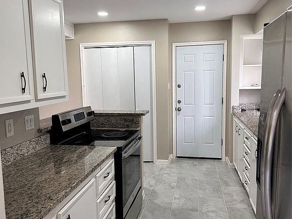 Be the first to live in this recently renovated three-bedroom, two-bath home on a corner lot in Cimarron. Large windows provide abundant natural light throughout. The spacious backyard is ideal for outdoor activities. Modern ceramic tile flooring extends through the entire home. The living room offers a wood-burning fireplace and backyard views. The kitchen features granite countertops and stainless steel appliances. The primary bedroom includes an en-suite bathroom with an updated shower. This home is conveniently located near shopping and restaurants.