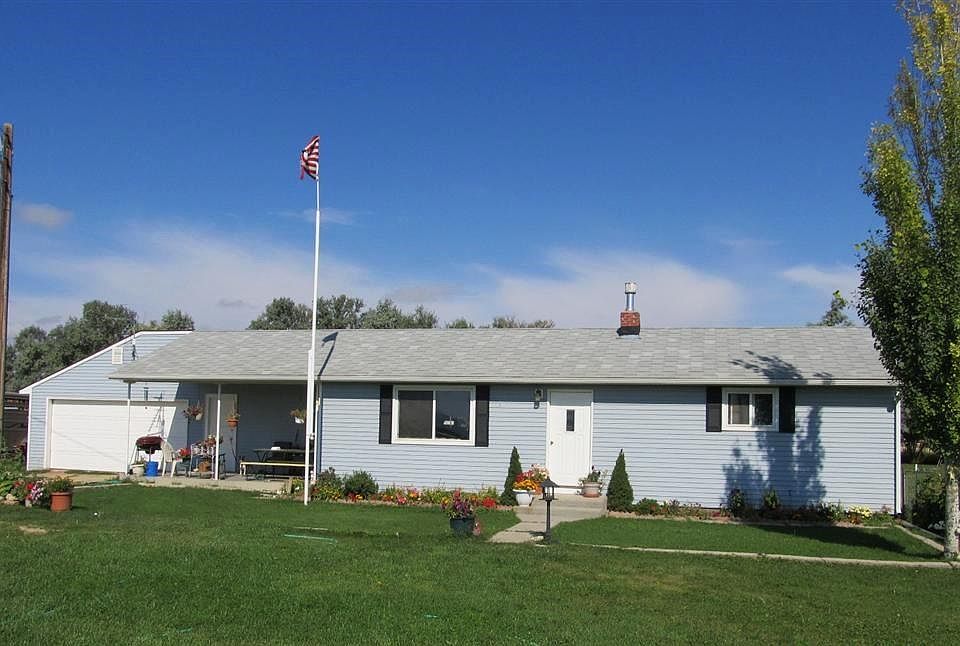Triangle Acres Ranch! Sweet little horse property in between Cody and Powell. Over 5 irrigated acres with incredible views. Large shed (1000 sf) and several smaller loafing sheds for cattle. Nicely landscaped with a long mature row of trees. This cute one level home has been well maintained and features a cozy gas heating stove. Large attached double car garage with extra storage space.