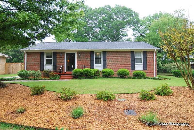 3 bedroom 2 bathroom all brick home is updated throughout. The eat-in kitchen has tile floors and granite countertops with updated light fixtures. The kitchen also has great counter and cabinet space and a bar for extra seating. The living room is open and a nice size for entertaining with nice hardwood floors. The master bedroom has hardwood floors and its own private bathroom with fresh paint, tile, and an updated light fixture. The back door located in the eat-in area leads out to the large fenced in backyard. There s a building located in the backyard that can be used for a workshop or garage. This home is in a great location close to downtown, shopping, and entertainment.