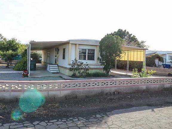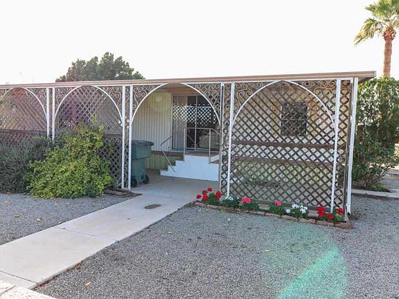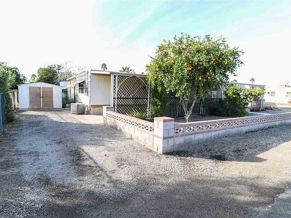 This 2 bedroom, 1 bathroom mobile home is in a great 55+ community, situated on a corner lot with lots of greenery and easy-care rock landscaping. You'll love the spacious living area, master bedroom, and bathroom! Partially furnished, and the refrigerator, washer, and two storage sheds are included! It has a long 2-car carport, along with a separate driveway that is long enough to park your RV! Come and take a look today!