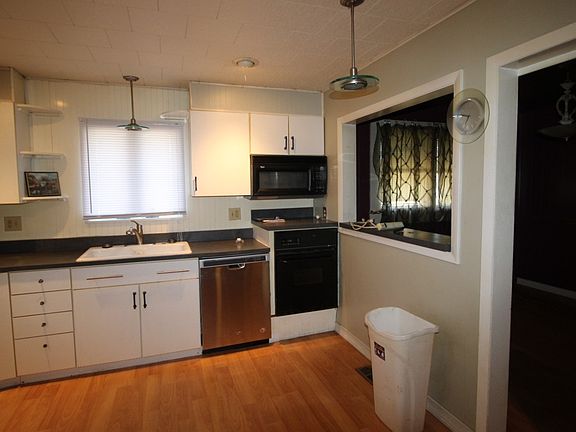 Adorable bungalow with shiplap enclosed porch, large living room, dining room with built in storage open to kitchen. The updated kitchen has abundant white cabinets, tons of counter space and built in stainless steel cook top, dishwasher, oven, microwave and roomy pantry. The master bedroom has a nice walk in closet and hardwood floors, the 2nd bedroom is spacious, and the bathroom has a large corner tub with shower. The exterior has a wonderful fenced yard, covered patio, 1.5 car garage and off street parking. This home is offered at an affordable price and move in ready.