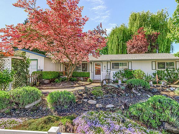 Charming Vintage Home with English Gardens and cottage, plus workshop area and workshop, first time on the market! Delightful home with many creative touches! Including a separate ''Cottage'' for reading, napping etc, Plus Sunroom and Gazebo with new deck on large corner lot, walking distance to the Rogue River and All Sports Park! Wainscoting, crown molding & New Vinyl windows. Lovely gas fireplace insert in living room! Kitchen with skylights overlooks the backyard! Front yard has beautiful dogwood tree, mature lavender bushes and dry creek bed with white vinyl fencing! Back yard with meandering walkways to gardens with water feature under a magnificent weeping willow tree. Mature Grape vine and apricot tree. Plenty of shade during the summer for those back yard get togethers! Outside shop area complete with work bench, concrete floor and metal shelter, shed set up for drawing room or more shop area! This home has a lot to offer!