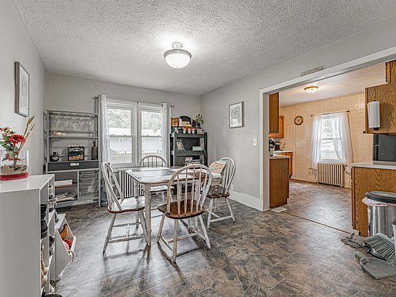 Nicely updated super solid two bedroom vinyl/aluminum sided bungalow style home situated on an extra large 81X124 privacy fenced corner lot -- move-in ready! Inside, you will find a comfortable living room with newer laminate flooring, a roomy formal dining room with plenty of room to accommodate a large and table and chairs, fully equipped kitchen, two bedrooms, and an updated full hall bath. Property also features a full usable basement that features laundry facilities, mechanicals, and great storage/work space. A 9X12 enclosed rear breezeway that connects the home to a dream 3+ car attached insulated/drywalled garage (also features an attached storage area -- garage has gas and water ran to as well as newer electrical service), vinyl windows throughout, efficient hot water heat, quaint front porch, rear storage shed with electricity -- all can also be found with this great residential dwelling. New roof in 2010, newer exterior doors, water heater replaced in 2014, updated interior light fixtures, central air conditioning added in 2014, new gutters in 2020 -- so many updates -- priced to sell at $99,900! This one will NOT last!