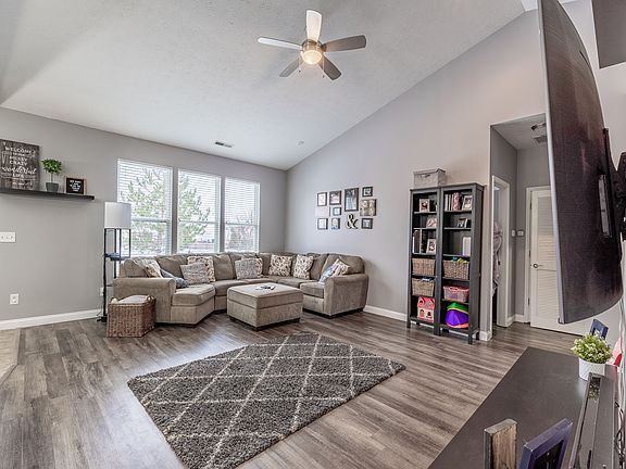 This nearly 1700sf ranch home is filled with updates & high-end finishes. The great rooms soaring cathedral ceiling adds to the specious feel as does the open floor plan. Homeowners removed a kitchen wall & added an island improving the flow & site lines. Other kitchen features include 42in cherry cabinets, granite counters, copper farm sink, new ss range & refrigerator. The sunroom leads to a new patio & is the perfect place to relax & enjoy the pond view. The primary suite is complete with a double vanity, jetted tub, separate shower & wi closet. Bedroom 2 is oversized with a wi closet & shares an updated hall bath. Laminate & tile flows throughout the home. Large premium cul-de-sac lot on a pond with nearby access to shopping & I65.