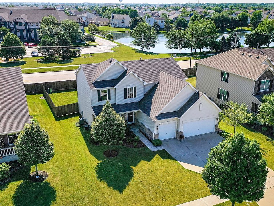 In the well developed "Fields of Shorewood" subdivision, this 4 Bedroom, 2.5 Bath two story home offers the excellent curb appeal of lush landscaping, brick and siding exterior and a relaxing covered front porch with seating area leading to the entry door with sidelight. You also appreciate water views from both the front and rear of your home. You're welcomed into a spacious 2 story Foyer with large hall closet and staircase upgraded with deep wood tone railings & decorative wrought iron spindles. The main living areas of the first floor have been freshly painted in neutral gray tones to accommodate your personal decor. Entertaining will be seamless with both formal Living and Dining Rooms plus casual living and dining in your eat-in Kitchen and adjacent Family Room with gas fireplace enhanced by its detailed white wrap and mantel plus recessed lighting. French doors lead from this room into your main floor Office. The Kitchen reveals abundant deep toned cabinets with crown molding, beautiful granite counters and center breakfast bar island plus recessed lighting, all appliances (new in 2013), pantry closet and dining area accessing patio doors leading to the patio and generous fenced backyard. This level also includes a lovely Powder Room and entry from the Foyer into the 3 car garage. The staircase, with a landing just a few steps up and then a turn brings you to the carpeted Upper Level. The with open view of the Foyer also reveals a linen closet. All Bedrooms are on this level, including your spacious Master with large walk-in closet and Ensuite Bath with dual sink vanity, tub and stand alone shower. There is also a full hall Bath and Laundry Room with washer and dryer, new in 2013. The full unfinished basement has high ceilings and furnace, water heater and humidifier, all new in 2013. There is also a water softener and Radon Mitigation system. As perfect on the inside as you see on the outside and with its excellent location close to shopping and highways, this is a home you'll absolutely love to call your own!