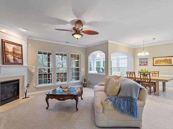 Immaculate, pristine, upgraded, spacious, beautifully appointed - this Copper Ridge plan with finished lower level is ready for you to move right in! NEWER: ROOF, microwave, Jenn Air dishwasher. Upgraded kitchen with luxury quartz developed in Italy and tile/marble backsplash, solar tube. Neutral color palette. Living room with gas fireplace is open to the dining area that flows into the sunroom. Enjoy your morning coffee or evening drink on the upper deck overlooking lush woods. Primary bedroom with tray ceiling and luxury bath. Guest bedroom, office, laundry room complete the main level. Full lower level with tons of space including bedroom with sitting area, full bath, bonus room and a flex/media room. Enjoy entertaining with surround system. Lots of unfinished storage space. Enjoy world class amenities in this 55+ active adult community.