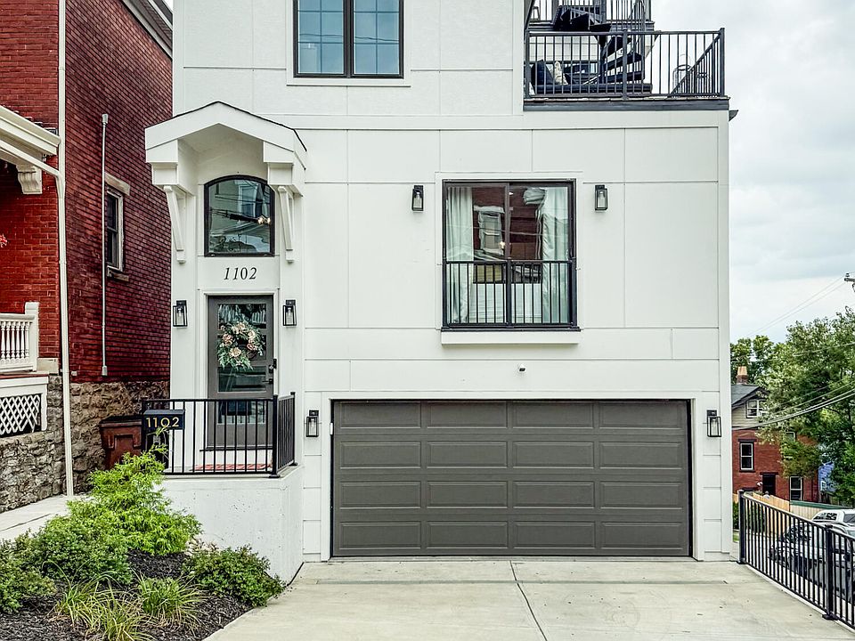 Welcome to 1102 Vine Street in Newport, KY - a 1 owner completely custom 2022 build featuring 3 bedrooms, 2.5 baths, and stunning skyline views from three private decks and a rooftop oasis, perfect for Firework Fridays or the WEBN fireworks. The open concept living and dining area includes a sleek built-in fireplace and a garage-style door that brings the outdoors in, while the chef's kitchen showcases custom cabinetry, granite countertops, and premium white GE Café appliances. The primary suite boasts a large walk-in closet, double vanity, and spa-inspired tiled walk-in shower, with two additional bedrooms offering incredible views. A versatile first-floor flex space makes the perfect office, den, or studio, and with high-end finishes throughout plus an unbeatable location, this one-of-a-kind home truly has it all.