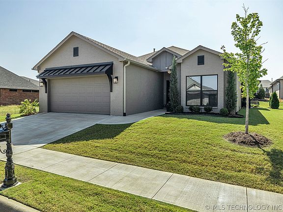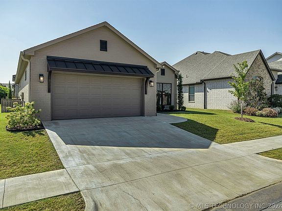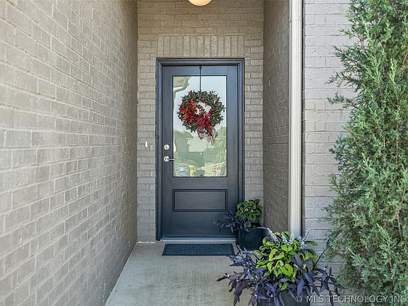 Tulsa Premier 55+ & gated. Tulsa Hills @ Hyde Park featuring indoor pickleball courts, commercial kitchen & dining space, game room, cardroom, exercise room, conference room, library, outdoor kitchen space, heated swimming pool, putting green & tennis courts! HOA includes full lawn service mowing, weeding, trimming & garden maintenance. Walking trails around the pond. Custom Built luxurious & impeccable! Open floor plan with many upgrades. Kitchen has walk in pantry, hardwood floors, stainless & granite. Living area has high ceiling & fireplace. Formal dining with hardwoods. Primary bedroom has lots of light & walk-in closet. Primary bath has tile and granite. Great light throughout. Screened in porch with beautiful professionally landscaped yard that are maintained by the HOA